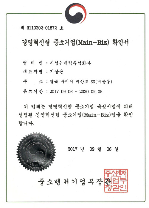 경영혁신형 중소기업 확인서