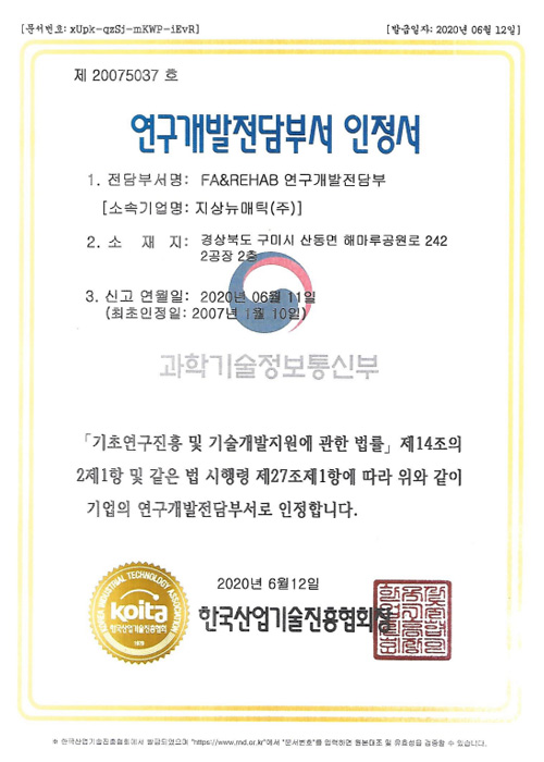 연구개발전담부인정서