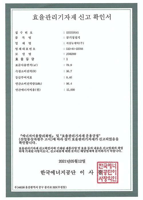 KC 안전확인신고 증명서
