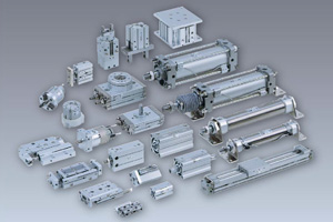 액추에이터 기종의 전체 구성을 일람표 형식으로 정리- 기본형, 로드레스형, 가이드 부착형, 로터리 액추에이터, 에어척, 특수 액추에이터
