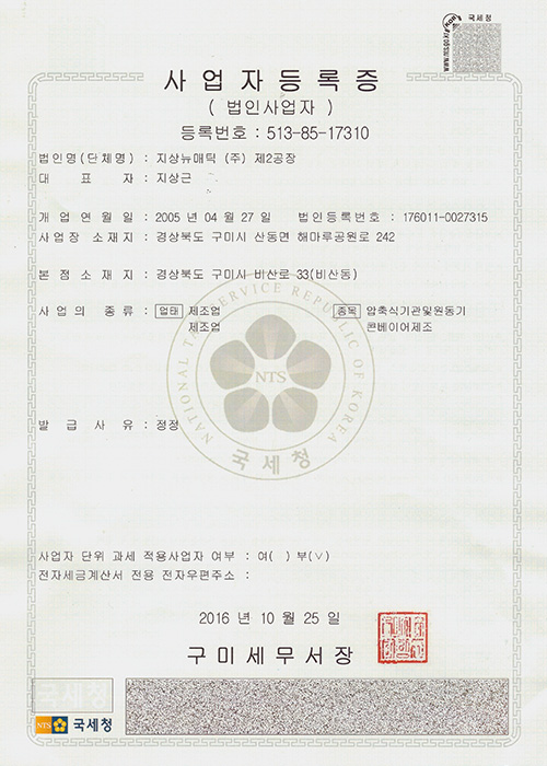 사업자등록증 (제2공장)