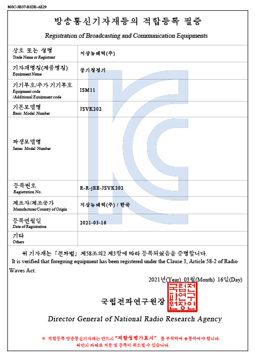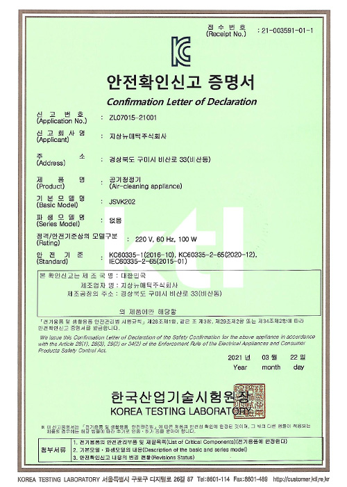 KC 안전확인신고 증명서